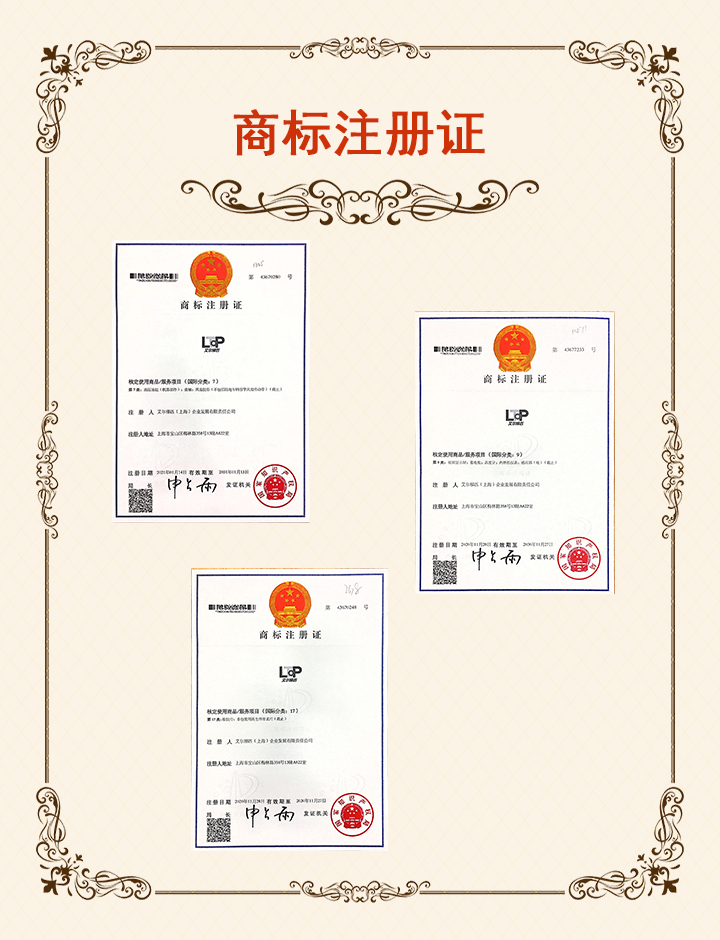 截止2021年 LTP已经向中国国家知识产权局申请 并获批 4. 7. 9 .17 大类内的 英文和中文的注册商标许可